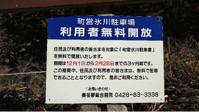 車は、定番の奥多摩町営氷川駐車場に…。登山口は、目の前です…(゚゚;)エエッ