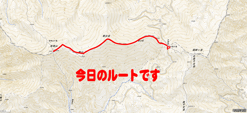 北奥千丈岳と国師ヶ岳の分岐です。地形図を見ると、同じ土俵の上にある山のようです。